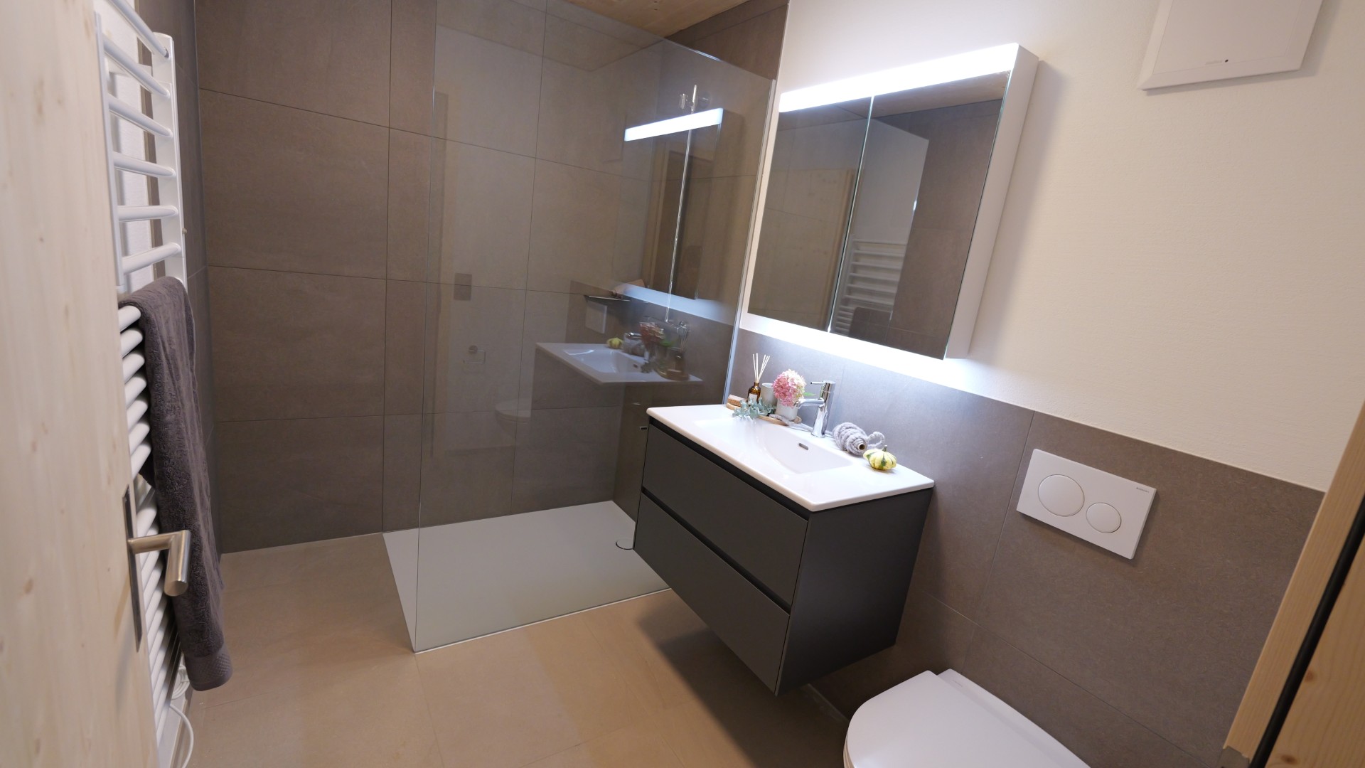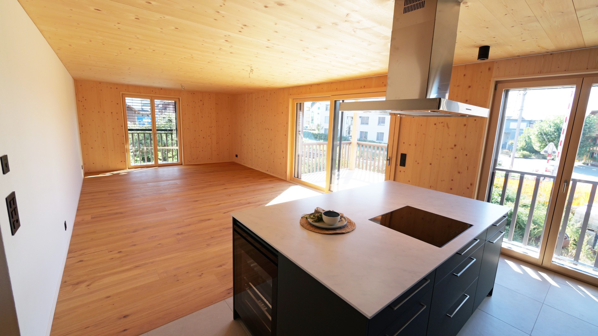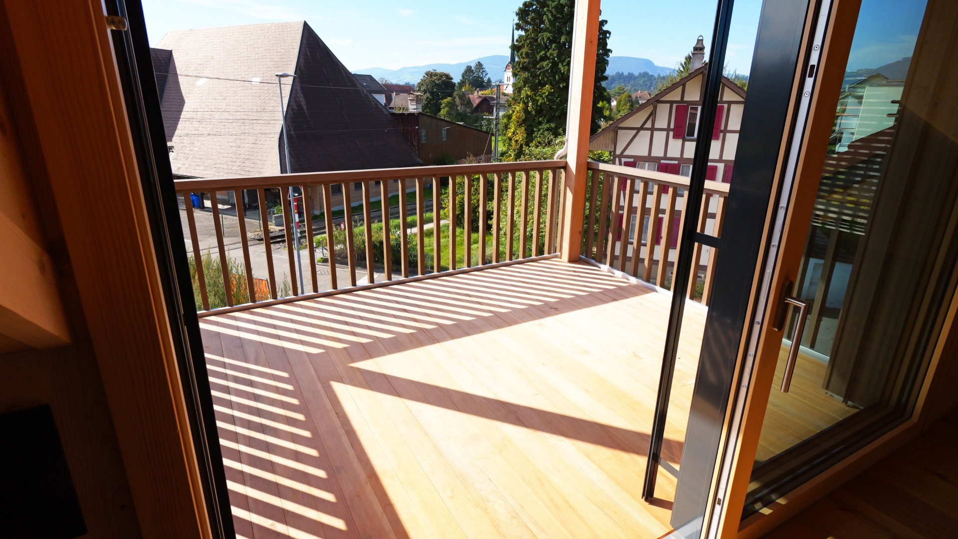 Der Balkon mit Weitblick lädt zum Verweilen ein. Hochwertige Materialien und moderne Geräte sorgen für zeitgemässen Wohnkomfort.
